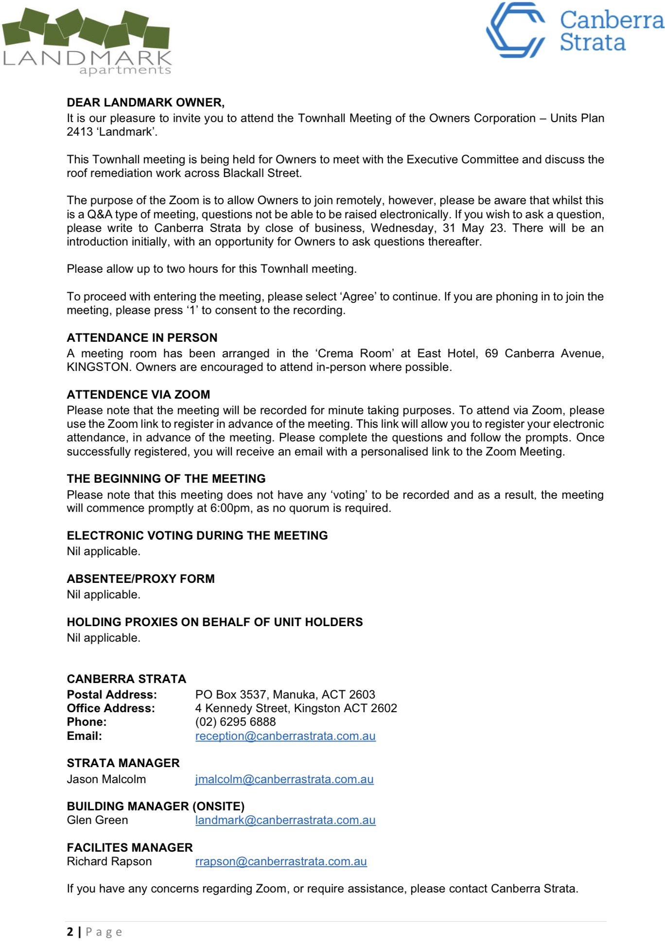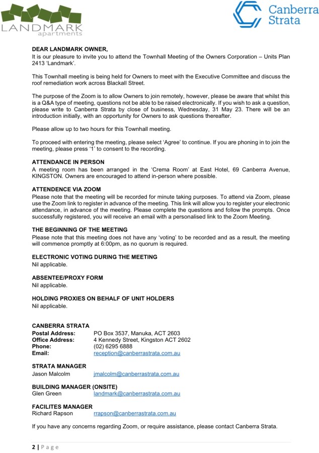 For Landmark Apartments owners and residents.