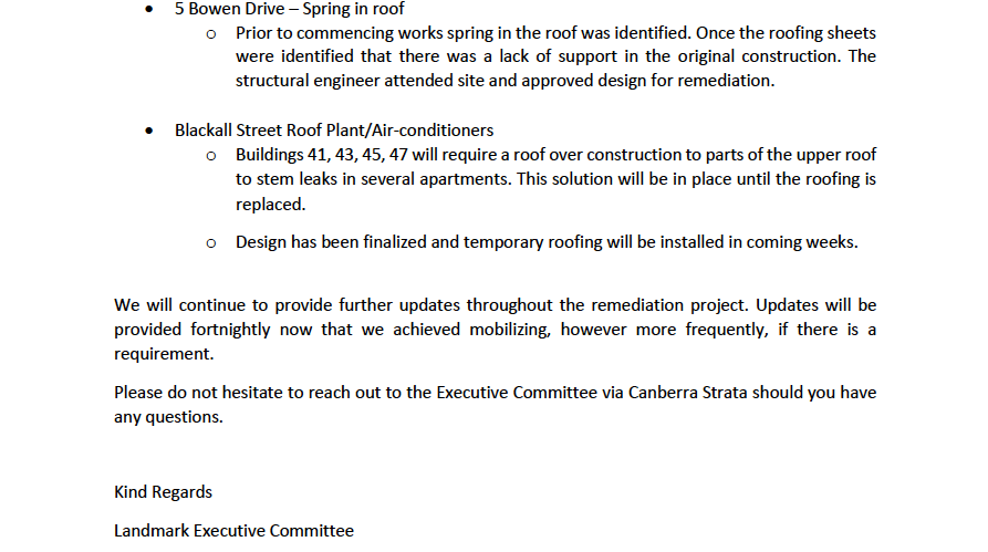 Blackall Street Roofing Updates