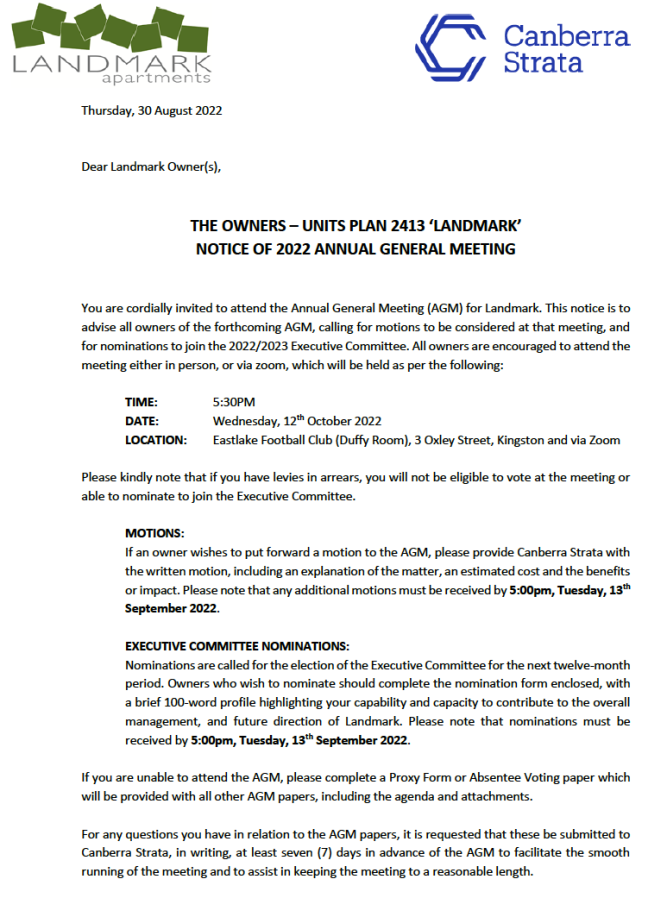 For Landmark Apartments owners and residents.
