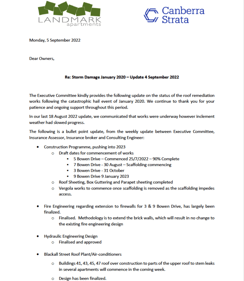 Blackall Street Roofing Updates