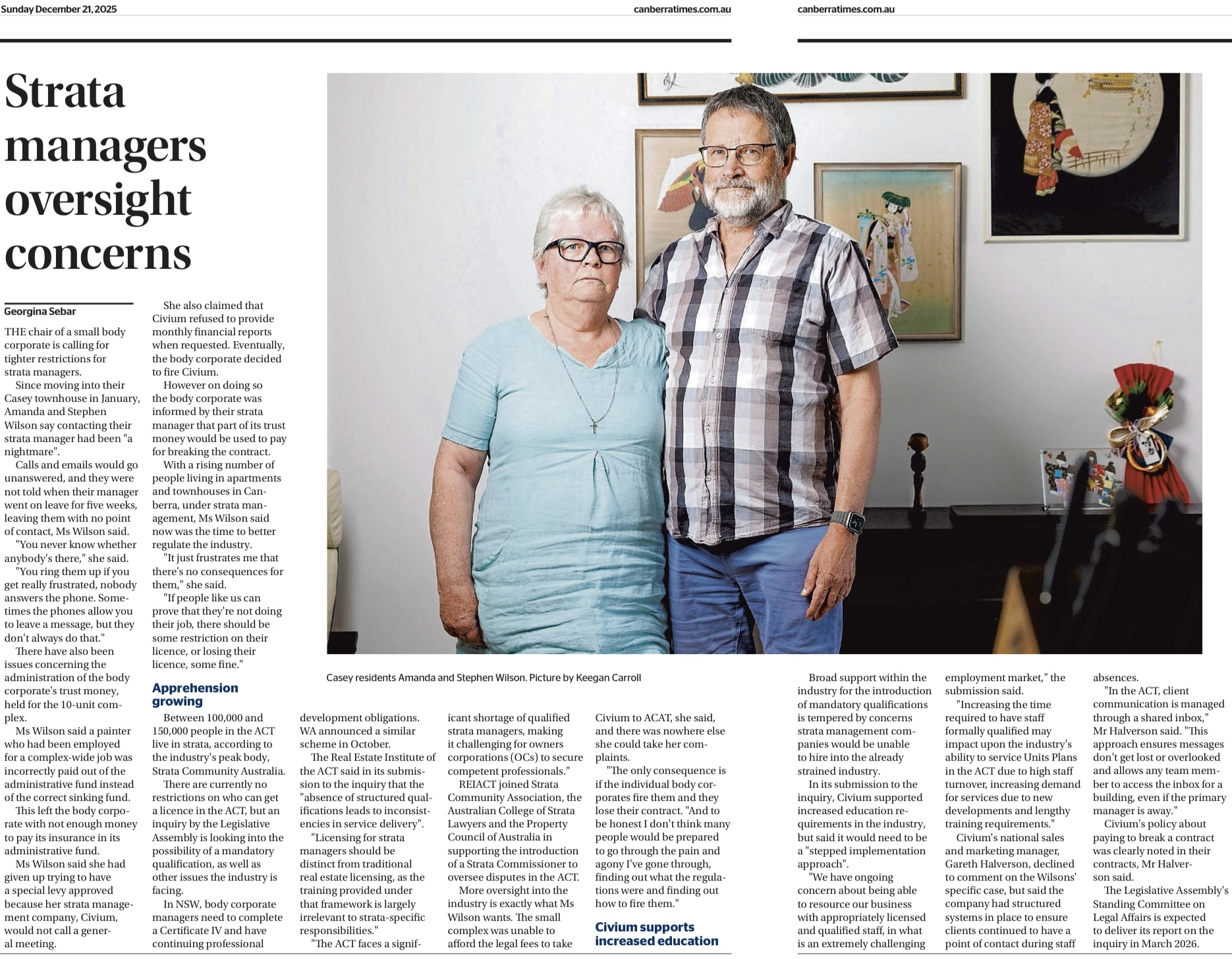 Property developer licensing scheme laws to be introduced in ACT (Canberra Times 29 Nov 23)
