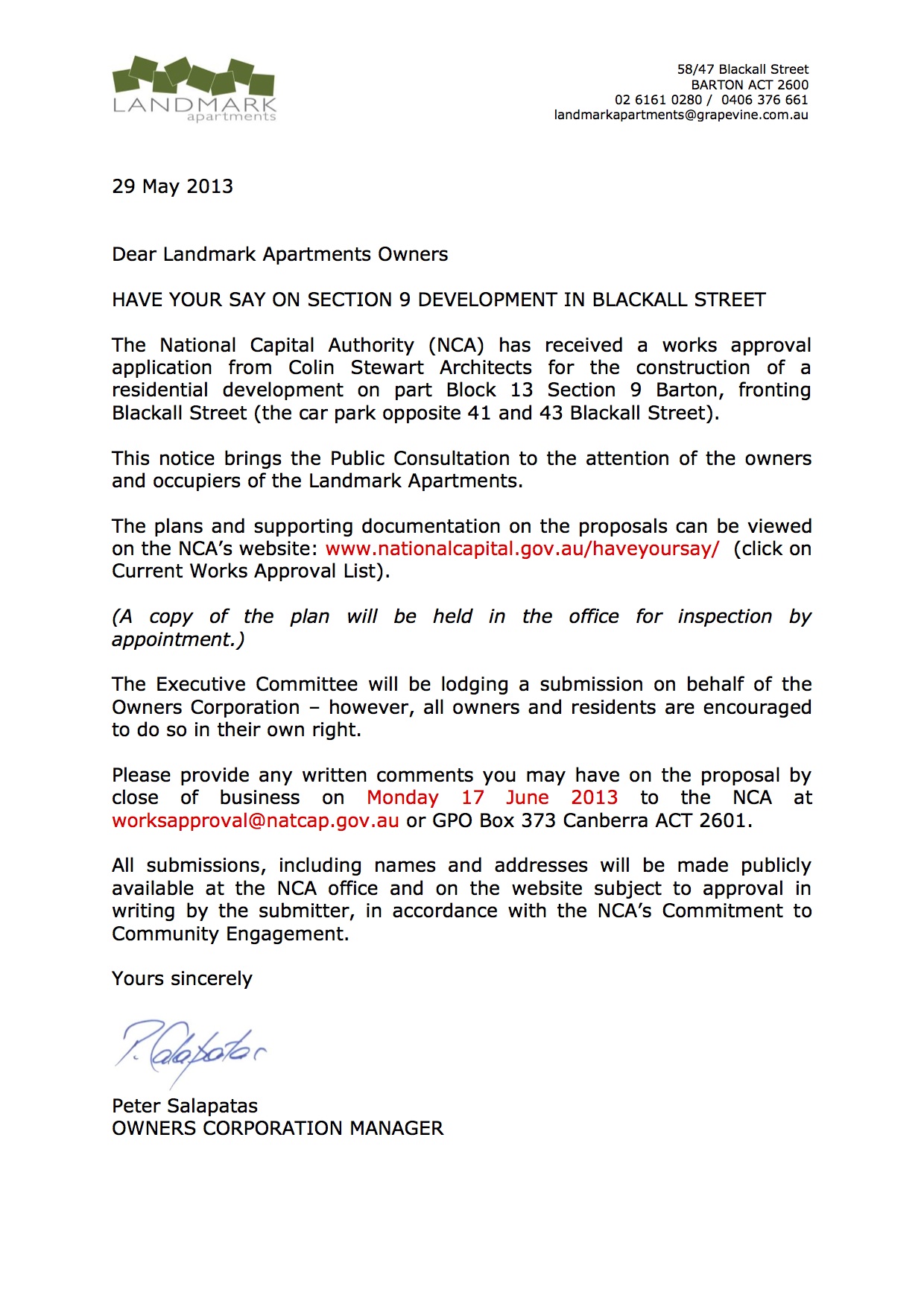 For Landmark Apartments owners and residents.